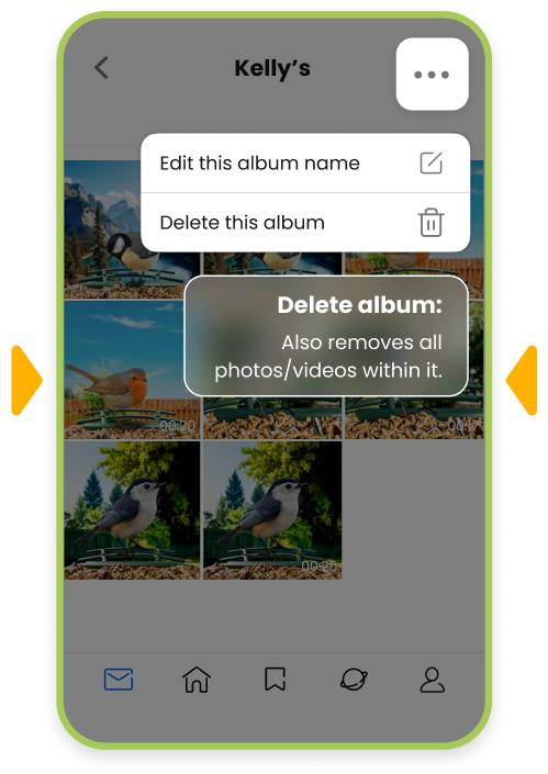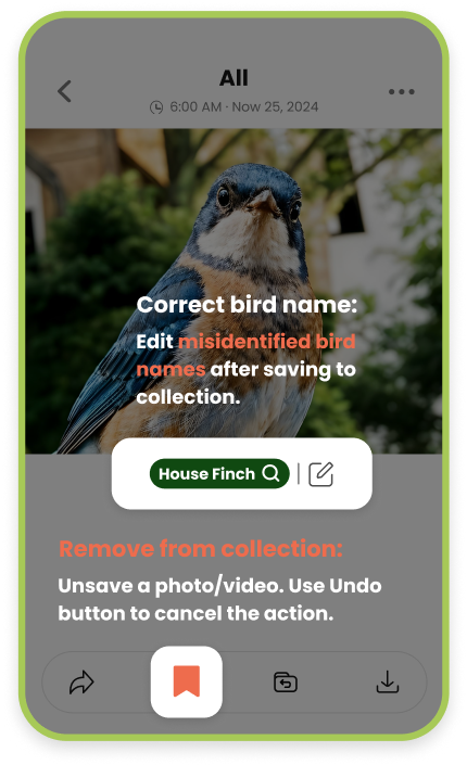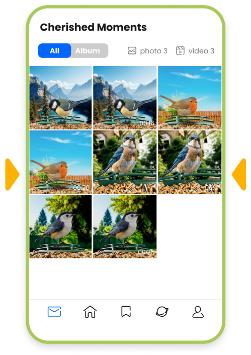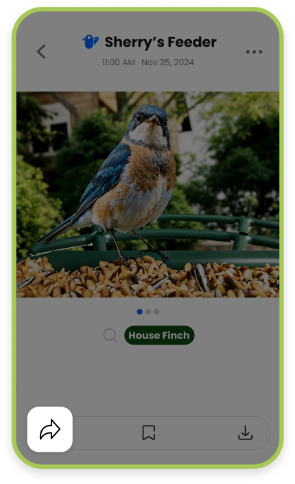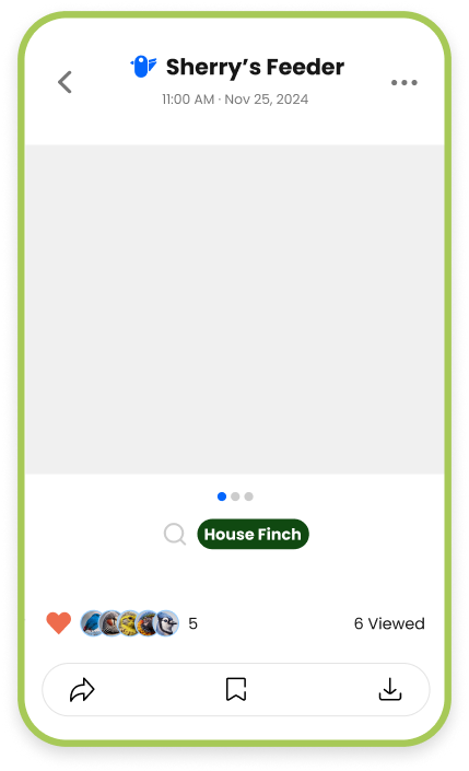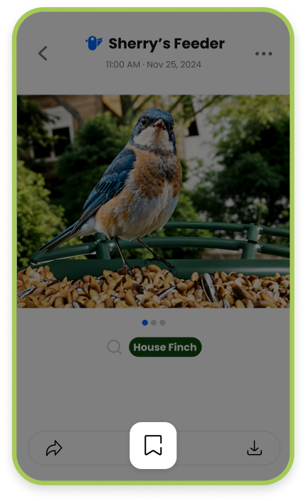 View bird alert notifications (kept for 15 days only). Each alert includes 2 images and a 10s video.