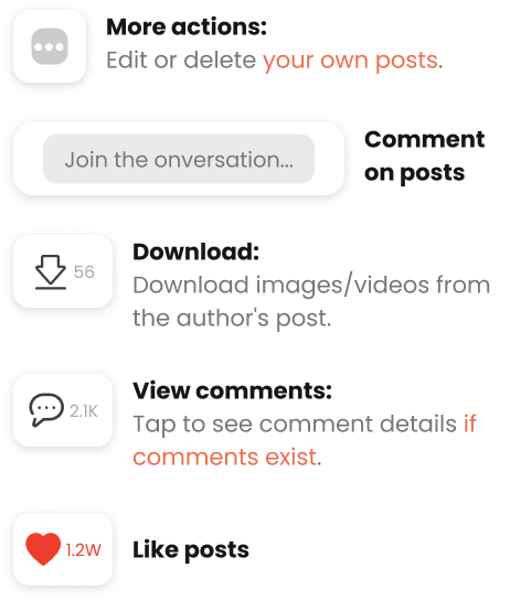Batch save, download, delete, or share all media (2 images and a 10s video) in an alert.