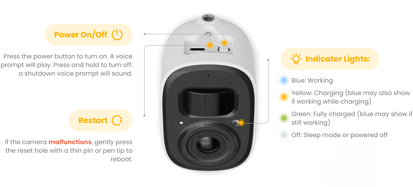 If the camera malfunctions, gently press the reset hole with a thin pin or pen tip to reboot.